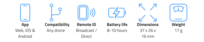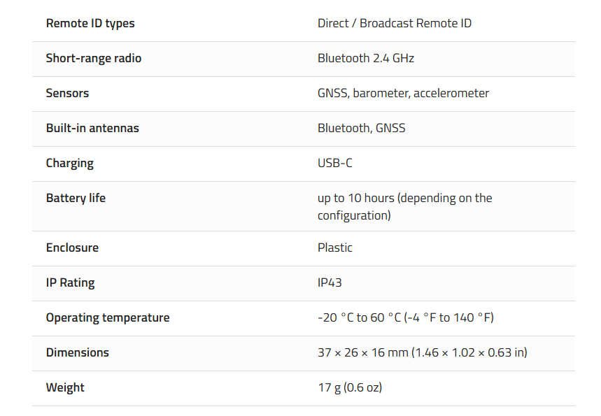 Up to 10 hours of operation, the longest among Remote ID modules.
